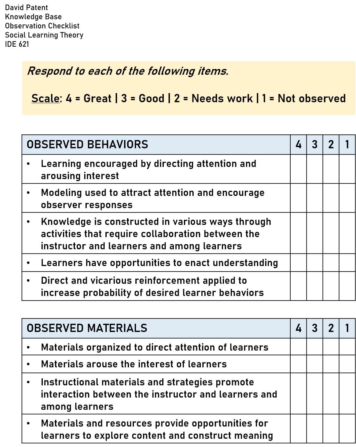 David Patent – IDE 621 – Principles of Instruction and Learning – Fall 2020